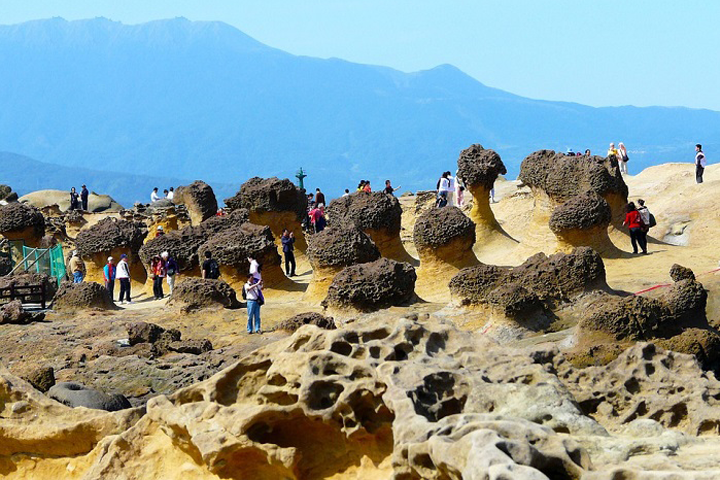 Các mỏm đá ở công viên địa chất Yehliu có những cái tên hết sức ngộ nghĩnh như: Đá Nấm (Mushroom Rock), Đá Nến (Candle Rock), Hài Tiên (Fairy’s Shoe), đá Đầu Rồng (Head Dragon),… và nổi tiếng nhất là hòn Đầu Nữ Hoàng (Queen’s Head).